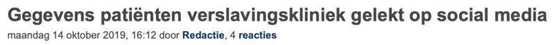 Gegevens patiënten verslavingskliniek gelekt op social media