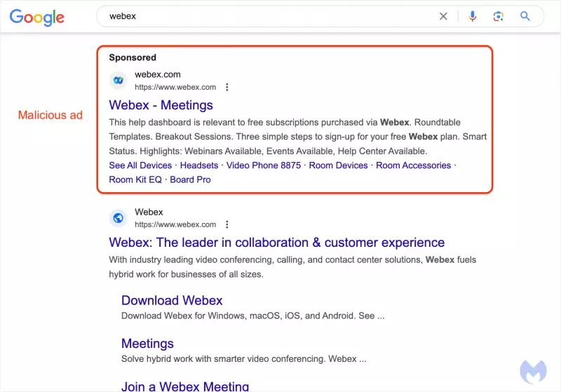 Nep-Cisco Webex Google Ads Exploiteren Tracking Templates voor Verspreiding van Malware