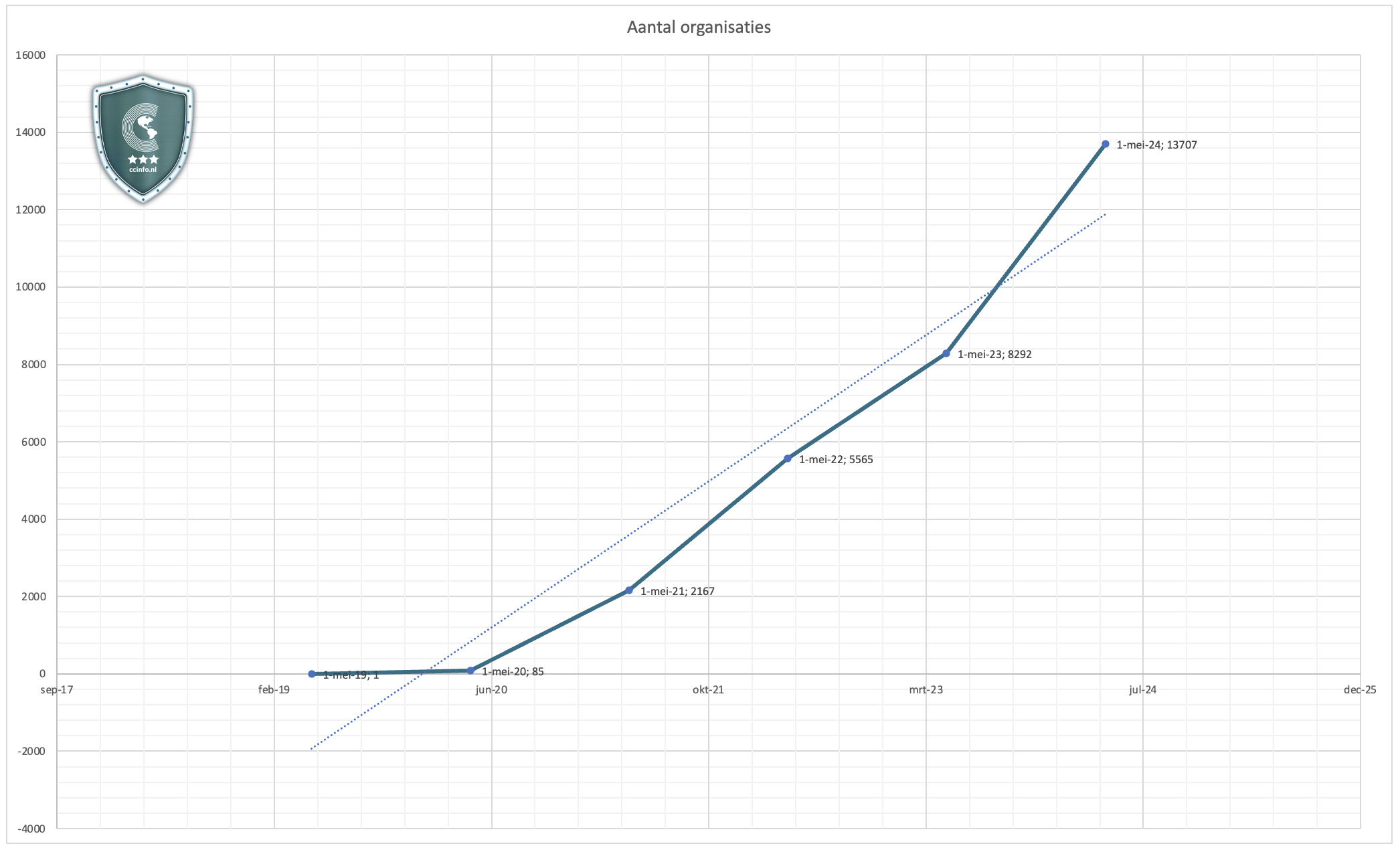 | Meetmoment | Aantal organisaties waar data van gelekt is op het darkweb |