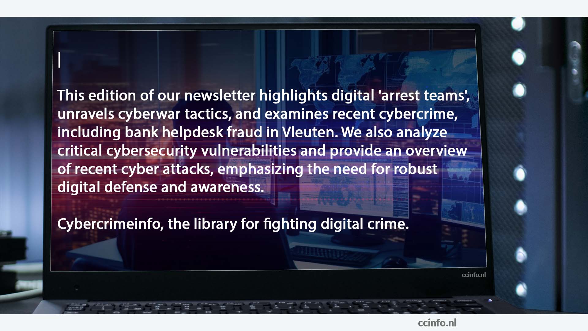 Deze editie van onze nieuwsbrief is een essentiële lees voor iedereen die zich wil informeren over de laatste ontwikkelingen in digitale veiligheid en de bestrijding van cybercriminaliteit.