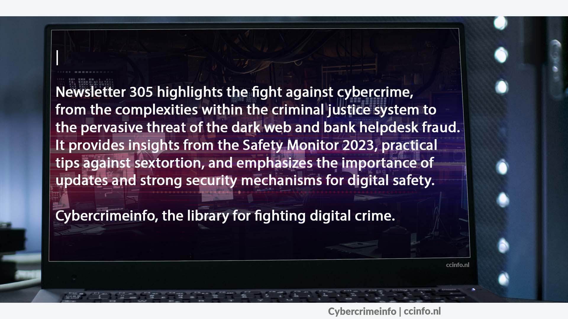 In de nieuwste editie van onze nieuwsbrief, nummer 305, duiken we in diverse facetten van cyberveiligheid en de strijd tegen cybercriminaliteit. We beginnen met een diepgaande analyse van de uitdagingen binnen de strafrechtketen bij het bestrijden van online criminaliteit, belichten de lage aangiftebereidheid onder slachtoffers en de noodzaak voor betere organisatiestructuren bij politie en justitie. We verkennen ook de resultaten van de Veiligheidsmonitor 2023, die onthult dat 16% van de Nederlanders slachtoffer is geworden van cybercriminaliteit, variërend van oplichting en fraude tot persoonlijkere aanvallen zoals stalking en shamesexting, en bieden praktische tips voor een veiligere online ervaring.