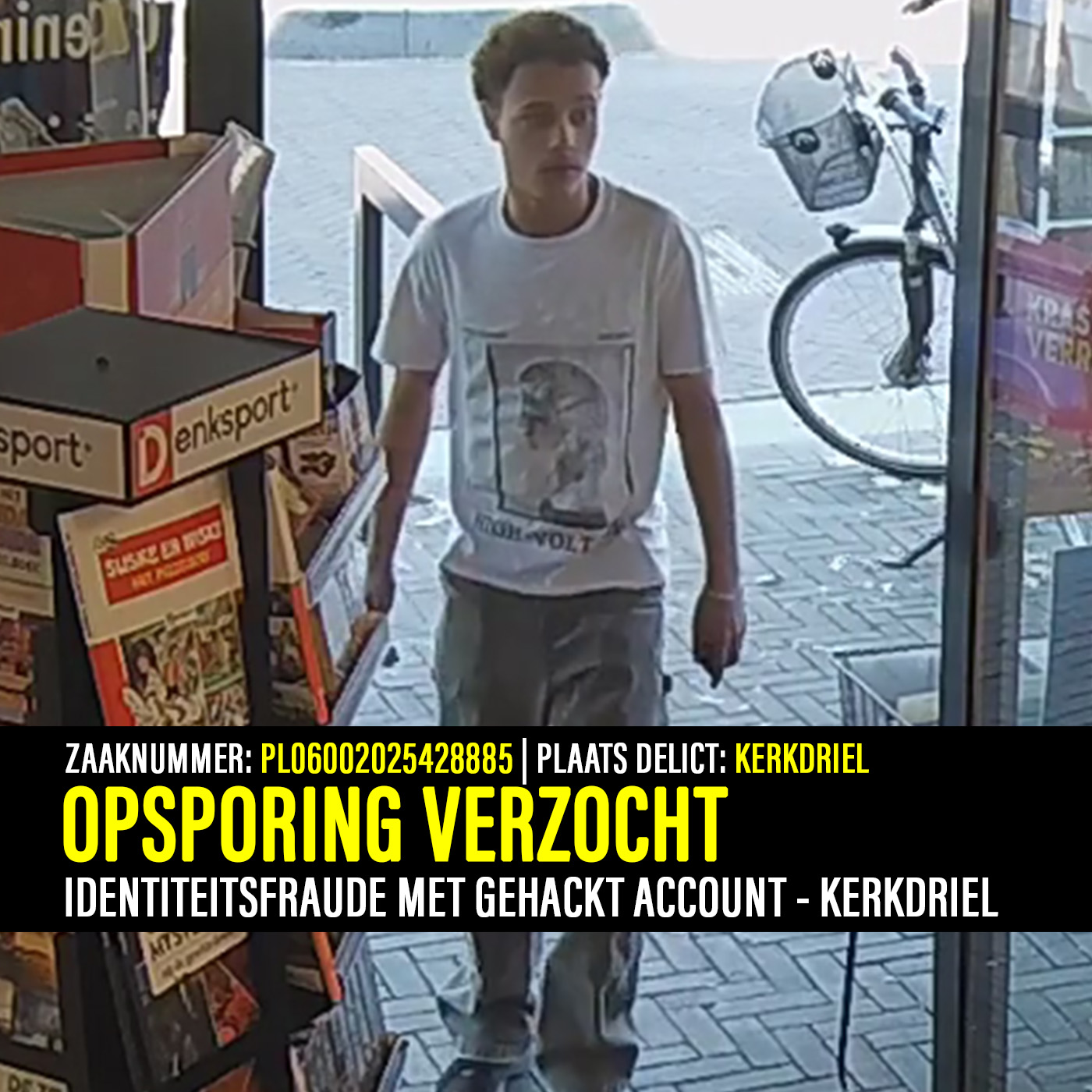 - Jongeman gezocht: De politie zoekt de jongeman die de pakketten ophaalde in Kerkdriel en Rosmalen (zaaknummer PL06002025428885)