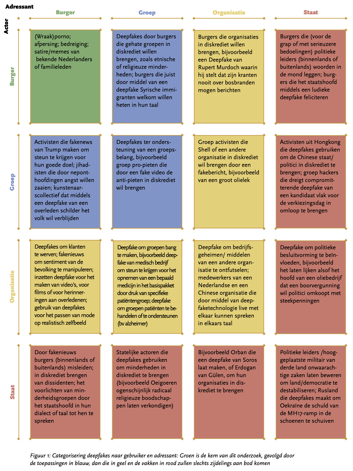 Van der Sloot noemt het ludieke filmpje van de zingende ministers dat tijdens de feestdagen rondging, maar hij waarschuwt voor serieuzere problematiek. 'Je kunt ook de minister van Defensie de oorlog laten verklaren aan een ander land, of door het manipuleren van satellietbeelden insinueren dat Rusland kernraketten naar de Oekraïense grens verplaatst. Heel veel kwalijke toepassingen. Daarom hebben wij onderzocht of de wetgeving met betrekking tot deepfakes toereikend is en wat er aan moet veranderen.'