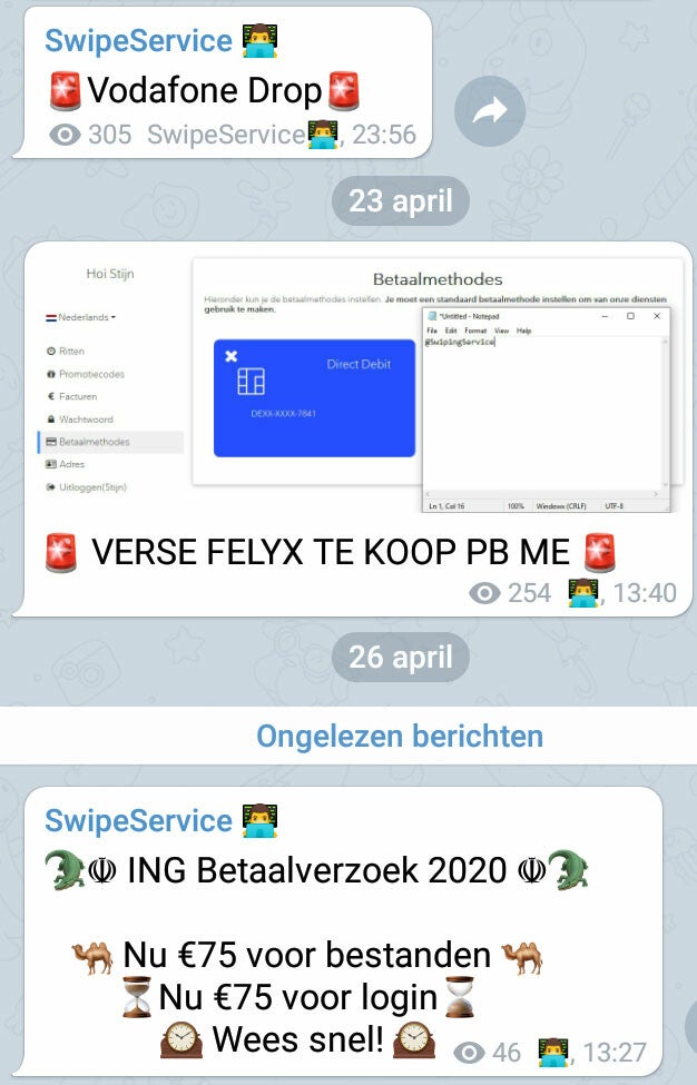 Het is helaas niet duidelijk te krijgen hoe deze dumps gewogen moeten worden, want de mate van dump verschilt per Telegram groep. Maar dat het dumpen gebeurd is een feit (zie de geanonimiseerde voorbeelden onderstaand).