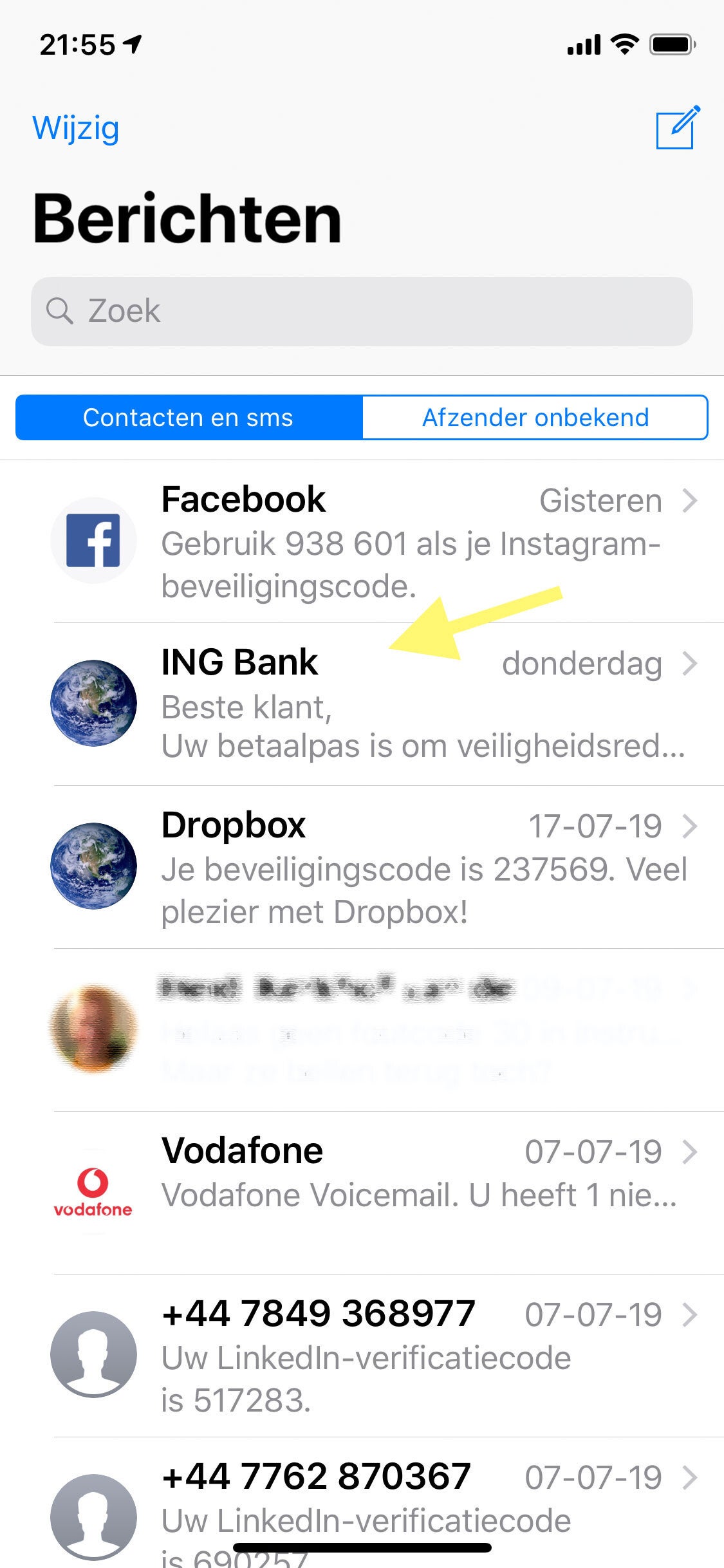 Nep SMS tussen de echte berichten